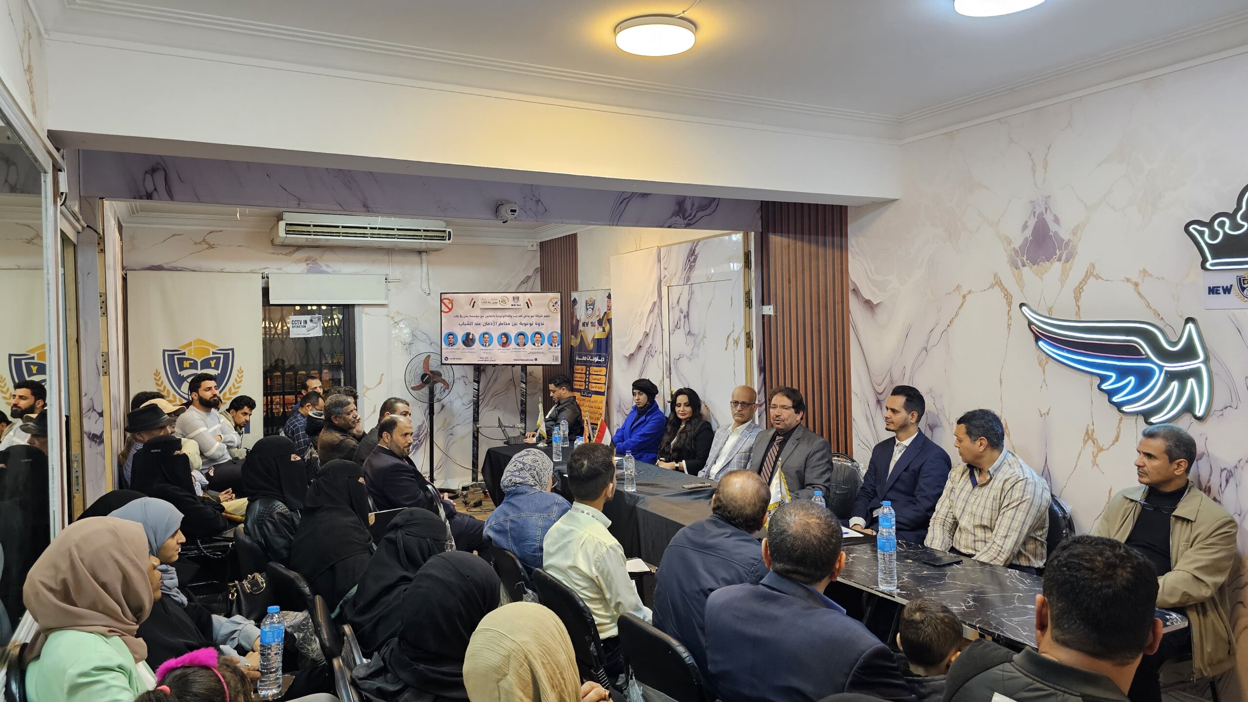 نظّمت شركة نيو يالي للتكنولوجيا، بالتعاون مع مؤسسة يمن بلا قات ندوة توعوية تحت عنوان "مخاطر الإدمان عند الشباب: التحديات والحلول" وذلك في مقر معهد نيو يالي يوم23 نوفمبر2024. هدفت الندوة إلى تسليط الضوء على مخاطر الإدمان المتعددة التي تواجه الشباب، وسبل الوقاية، وضرورة تكاتف الجهود المجتمعية لمكافحتها. شارك في الندوة عدد من المختصين في مجالات الصحة النفسية والاجتماعية، د/ حميد زياد الأمين العام لمؤسسة يمن بلا قات، واللواء/ أشرف محمدين، والمستشار الإعلامي فؤاد قاسم البرطي إلى جانب ممثلين عن الجالية اليمنية الأستاذ/ عمر بابطين رئيس الجالية اليمنية والدكتورة/ سناء مكي ـ نائب رئيس الجالية اليمنية في مصر وأهالي الشباب، حيث تم تناول موضوعات مثل أنواع الإدمان أسبابه النفسية والاجتماعية، وآثاره السلبية على حياة الأفراد والمجتمع. في كلمته الافتتاحية، شدد الدكتور/ توفيق الفلاح ـ رئيس مجلس الإدارة على أهمية التوعية المبكرة بمخاطر الإدمان مشيرًا إلى أن الشباب هم الفئة الأكثر عرضة لهذه المخاطر.![]()
